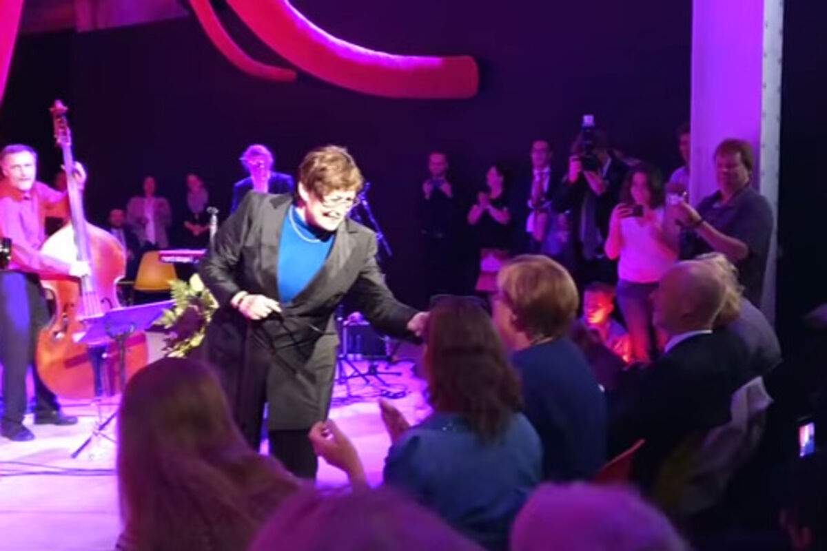 Kamera je kacelarku uhvatila na koncertu kako “pomaže“ džez pjevačici u pjevanju pjesme “Čudne stvati se dešavaju svakog dana“.