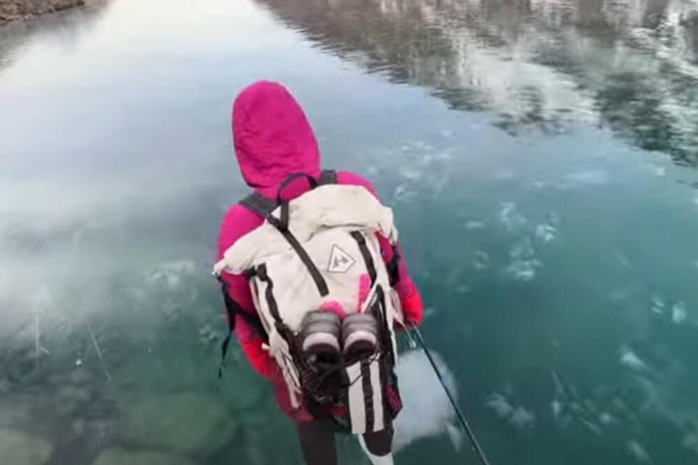 Snimak koji su napravili instruktor spašavanja na ledu i njegova supruga pokazuju kako se klizaju na rijetkom "ledenom prozoru" u alpskim jezerima Aljaske, piše BBC.