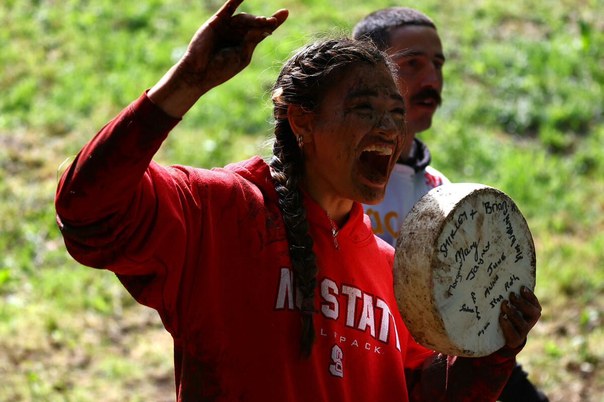 Ovogodišnje mjesto takmičenja je posebno klizavo i blatnjavo nakon nedavne kiše. Članovi lokalnog ragbi kluba poređali su se na dnu kako bi uhvatili takmičare koji se budu prevrtali.