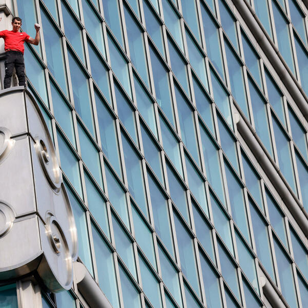 Ljudi okupljeni na ulici ispod nebodera pozdravili su usklicima trenutak kada je Honold stigao na vrh na visini od 508 metara poslije 90 minuta penjanja. On je obučen u crvenu majicu sa kratkim rukavima mahao rukama kada je stigao na vrh.